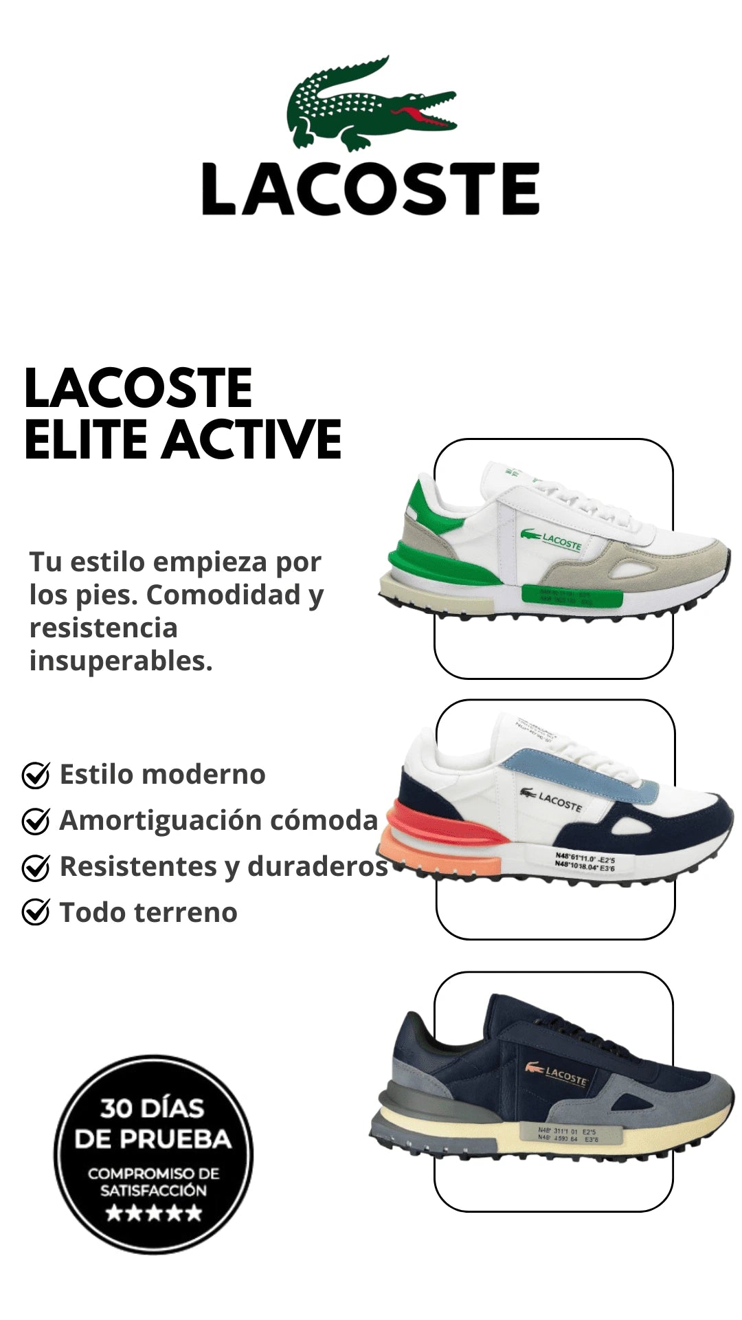 Diseñadas para brindarte comodidad todo el día, nuestras Zapatillas Lacoste Active Elite® combinan estilo, calidad y resistencia. El calzado ideal para acompañarte en cada paso.