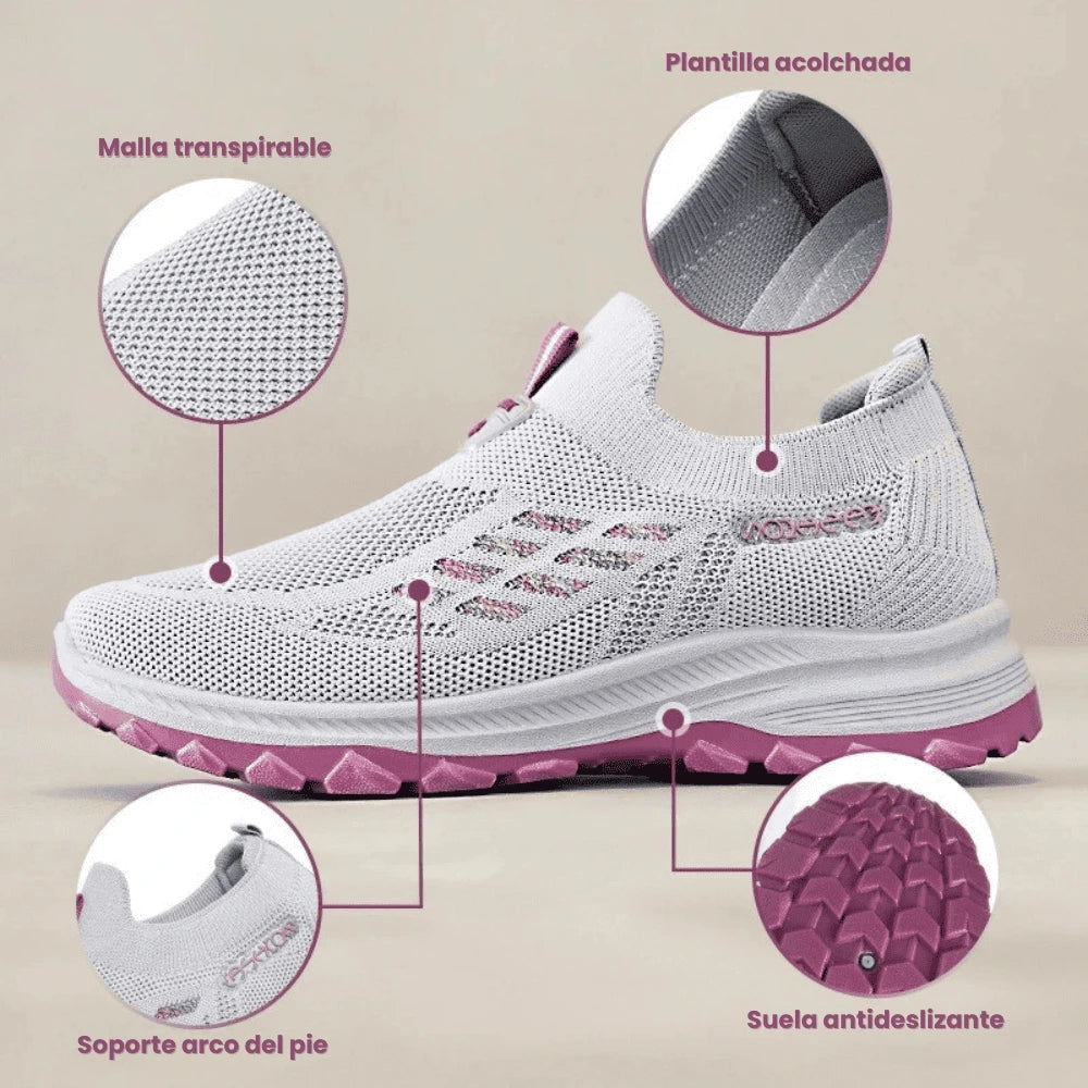 Diseñadas para quienes buscan descanso y estilo. Estas zapatillas alivian la fatiga de los pies y las piernas gracias a su diseño ergonómico y materiales livianos.