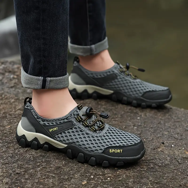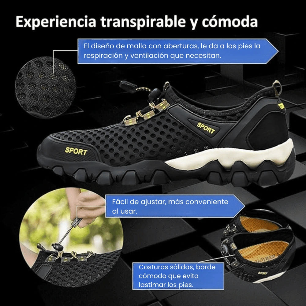 Su diseño en malla de alta ventilación mantiene tus pies frescos y secos, mientras su sistema de cordones elásticos permite un ajuste perfecto sin presión. Camina con libertad, sin irritaciones ni incomodidad.
